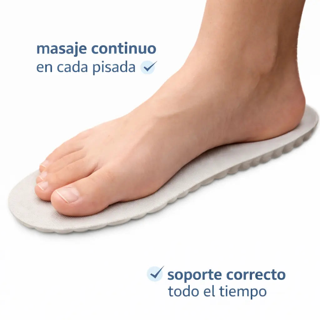 Masajear un pie estresado es la clave para una mejoría duradera. Las Ergofit usan el peso del cuerpo en cada pisada, más sus puntos de masaje para lograr un efecto relajador continuo.