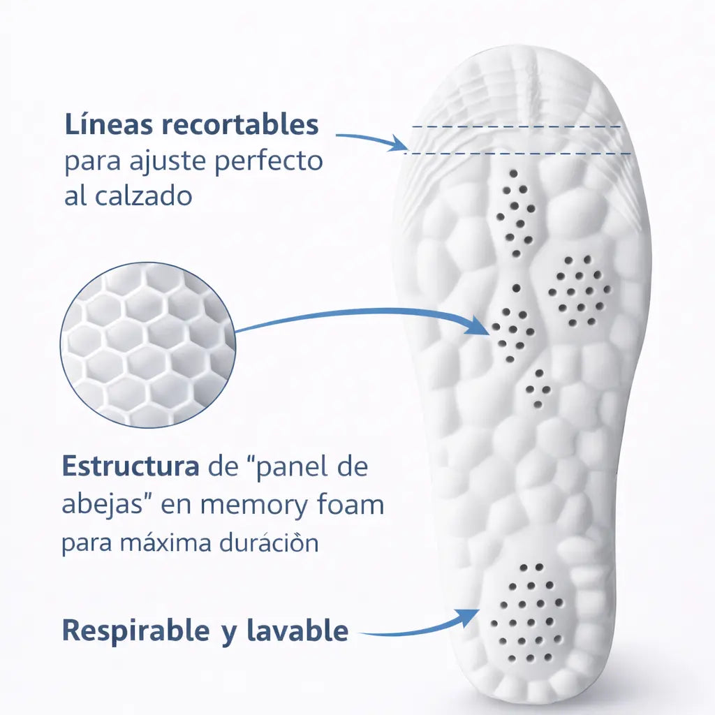 Su diseño especializado ofrece soporte dirigido al arco, ayudando a distribuir el peso de manera equilibrada y reduciendo la presión excesiva en la planta del pie.